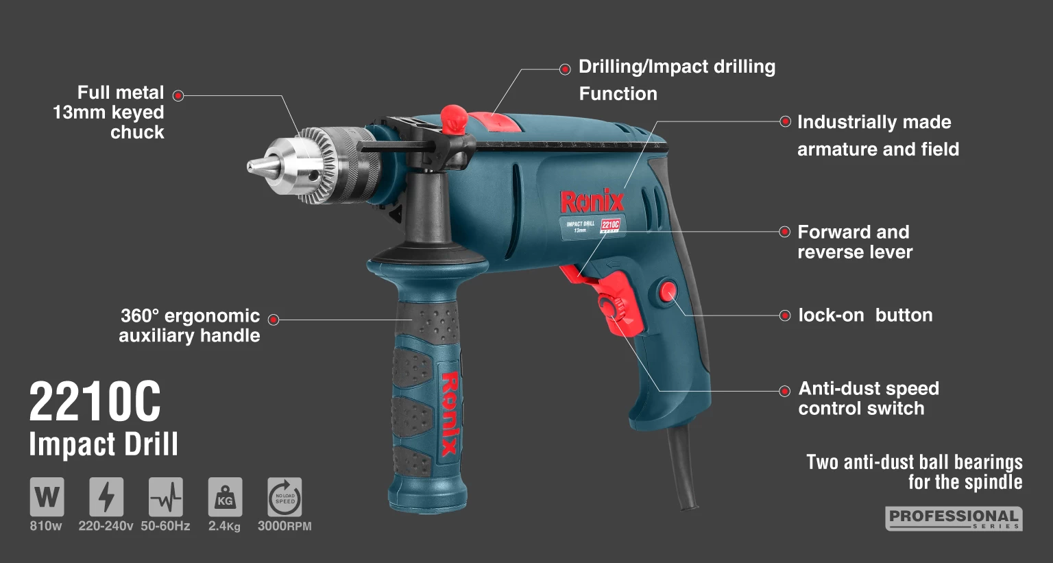 دریل 13 میلیمتری چکشی رونیکس مدل 2210C